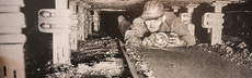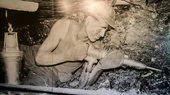 Stundenlang hämmerte der Bergmann mit schwerem Gerät gegen die Wände und baute die Kohle ab.